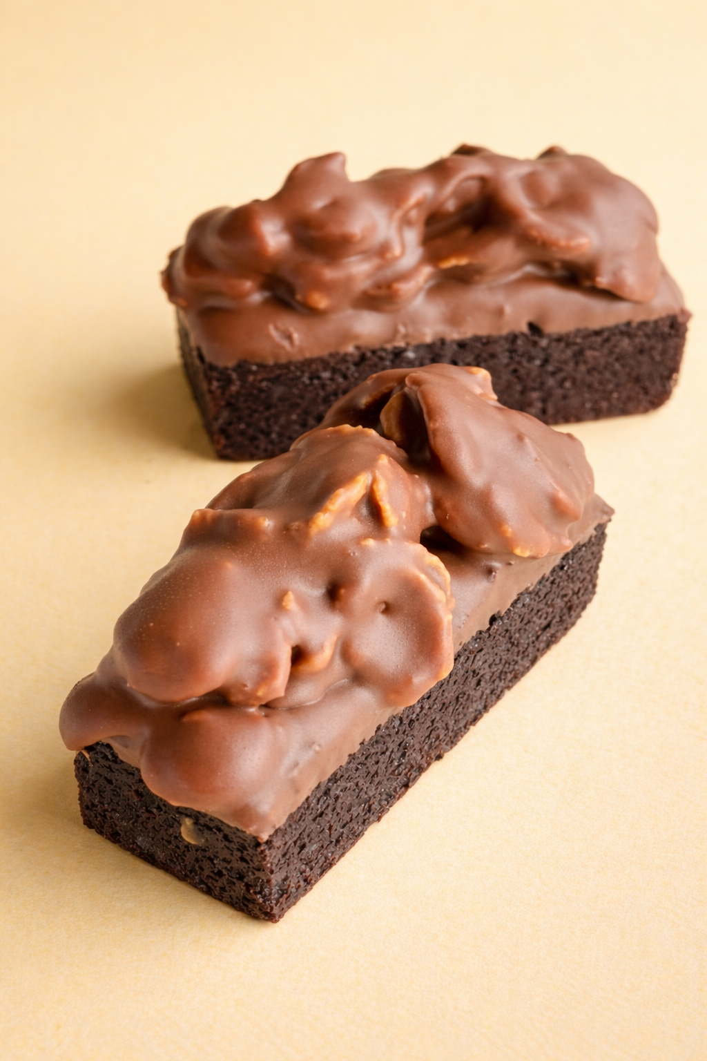 Насыщенный шоколадный бисквит с глубокой какао-нотой, хрустящие кукурузные хлопья в арахисовой карамели и щедрое покрытие молочным шоколадом. Плотный, контрастный, по-настоящему шоколадный.